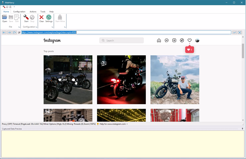 - 2. Open WebHarvy and load the Instagram page from which you need to scrape images