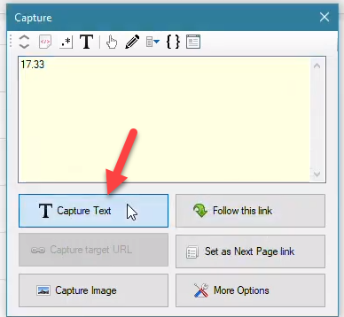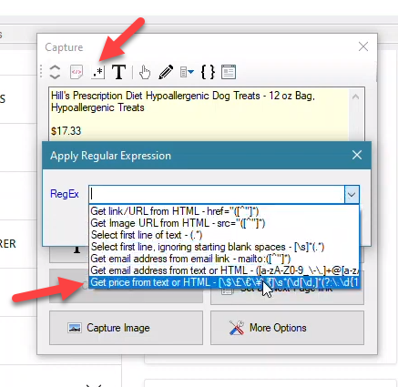 Apply the selected RegEx and then click on the main ‘Capture Text’ button once the price is displayed in the preview area.