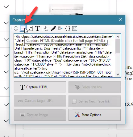 Click on the Capture HTML capture window toolbar option