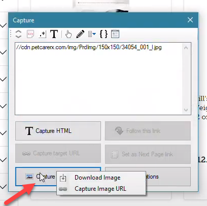 Apply the selected regex string and click on the ‘Capture Image’ button to download the product image or to scrape its URL.